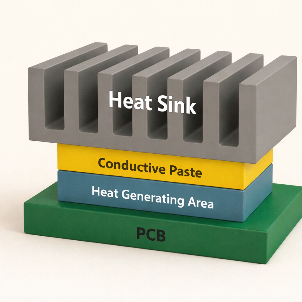 열전도 페이스트(Thermal Conductive Paste)는 전자부품과 방열판(히트싱크) 사이의 미세한 공기층을 제거하여 열 전달 효율을 크게 향상시키는 열전도 소재입니다.